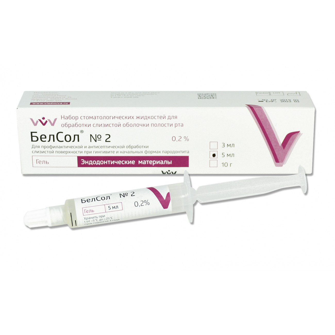 жидкость №2 - предназначенная для профилактических полосканий и антисептических промываний слизистой поверхности при гингивите и начальных формах пародонтита, а также для медикаментозной обработки препарированных полостей зубов перед пломбированием, инфицированных корневых каналов при лечении пульпитов и периодонтитов.
