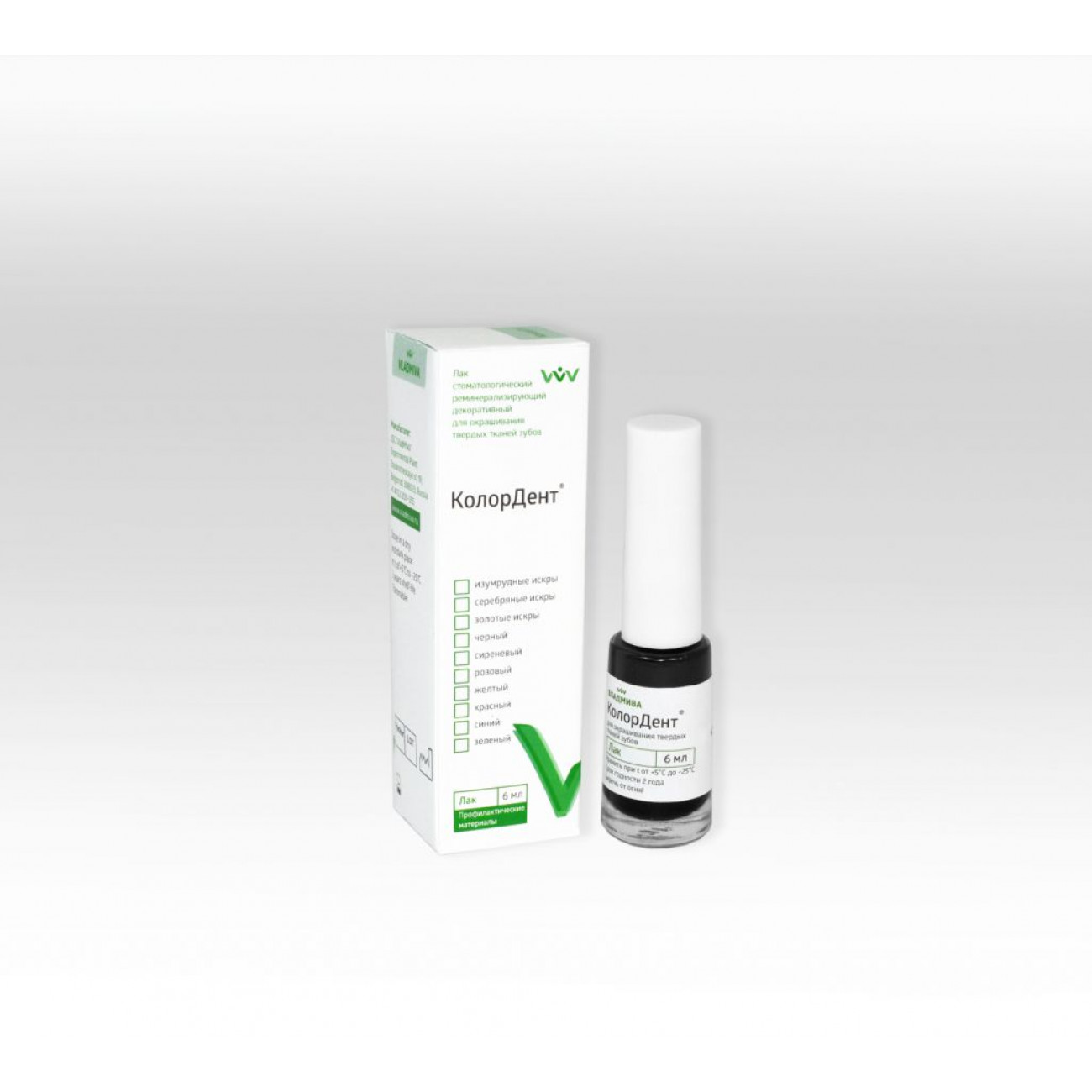 | Характеристики Колордент Черный Лак реминерализирующий | |