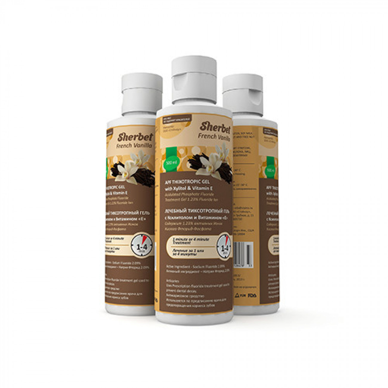 Стоматологический реминерализующий фтор-гель Sherbet APF (Щербет АПФ) со вкусом ванили - средство для клинической профилактики кариеса и гиперестезии зубов.