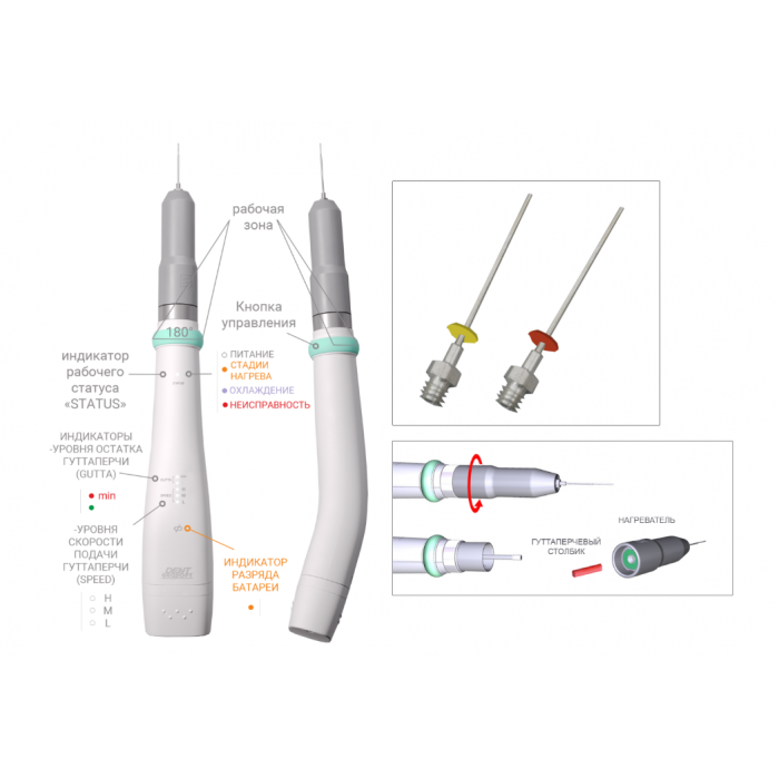Время готовности прибора к работе не превышает 20 секунд (нагрев инжекторной иглы и размягчение гуттаперчи)