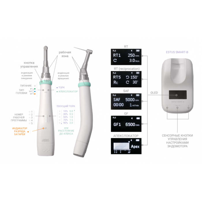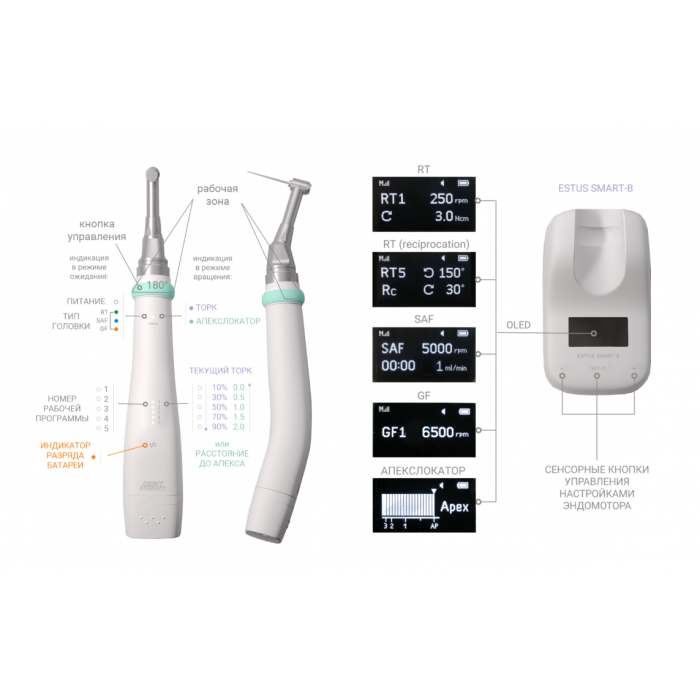 Максимальное удобство в работе за счет единственного органа управления — кнопки кольцевого типа, особенно для эндодотистов, работающих с эндомикроскопами. Одинакова удобна для левшей и правшей