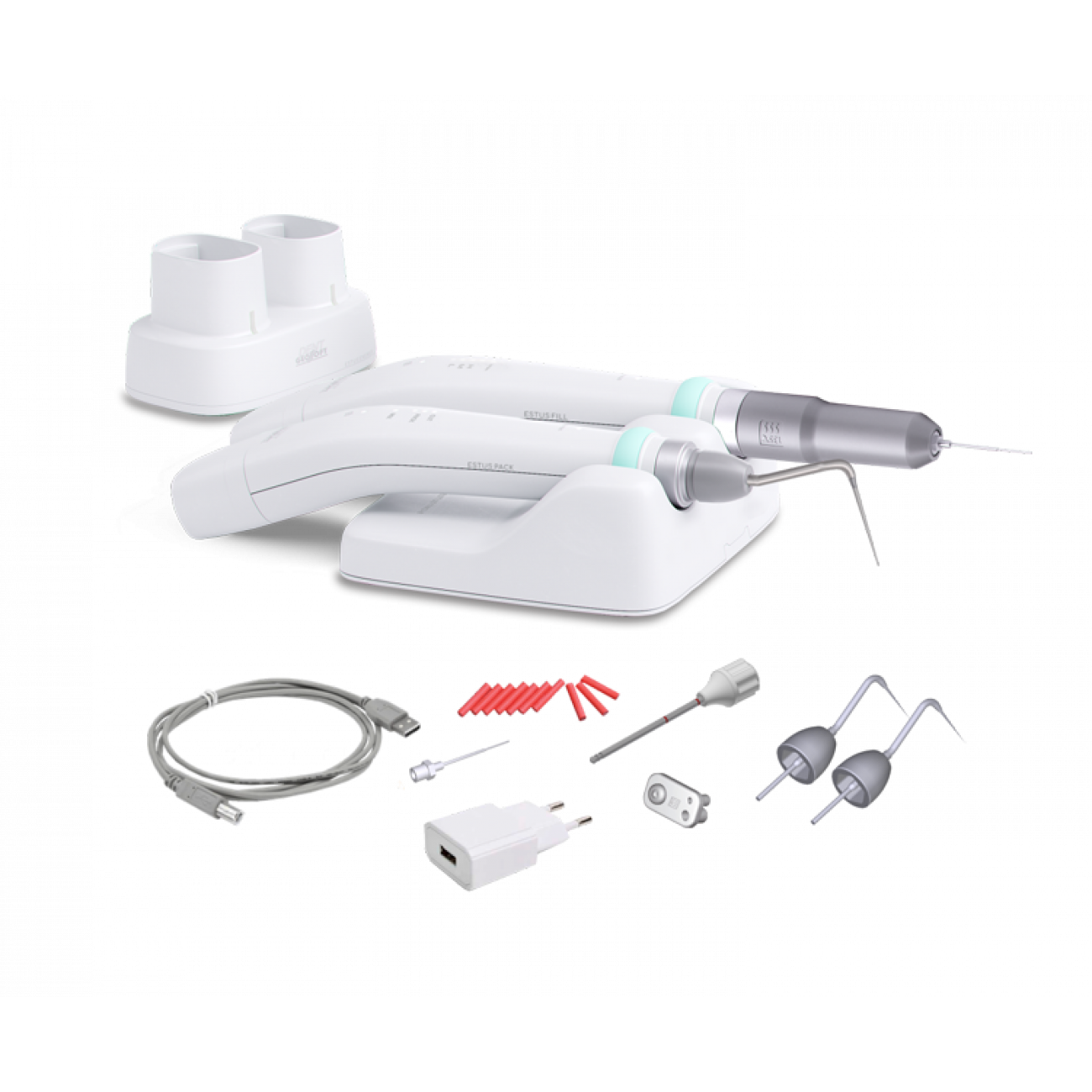 Система «Estus Pack-Fill» для трехмерной обтурации корневых каналов зуба разогретой гуттаперчей на этапах обтурации «DownРack» и «BackFill». Cостоит из 2 наконечников: 1. Наконечник «Estus Pack» для разогрева, вертикальной конденсации гуттаперчи и обрезания гуттаперчевых штифтов в корневом канале зуба на этапе обтурации «DownPack» и тепловой активации ирригационных растворов. 2. Наконечник «Estus Fill» для разогрева и последующей инжекции гуттаперчи в корневой канал зуба с помощью инжекторной иглы на этапе обтурации «BackFill»