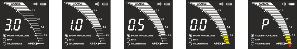 Специальный режим работы позволяет апекслокатору EndoEst-Apex 02 C корректировать измерения при работе с ирригационными растворами в зависимости от применяемого ирриганта, включая гипохлорит натрия (NaClO), ЭДТА или хлоргексидин.