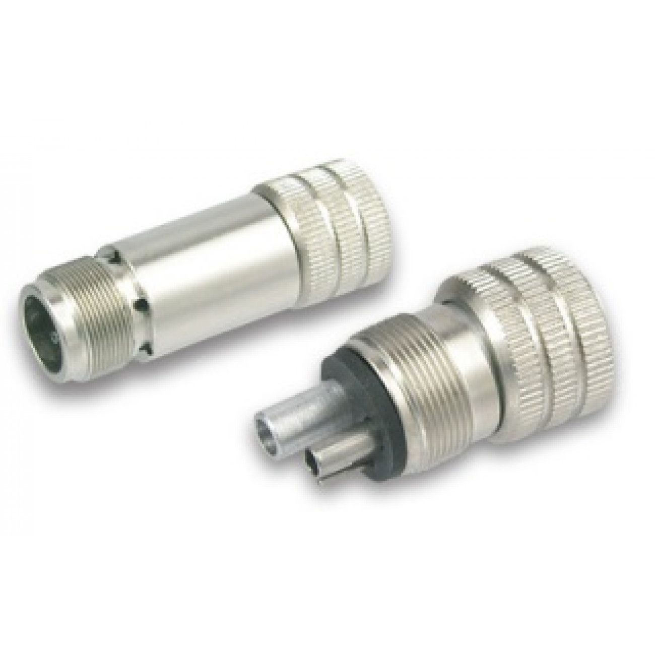 Переходник М4-В2 предназначен для соединения шланга (установки), имеющего 4-х канальное присоединение MIDVEST (M4), с турбинным наконечником или пневматическим микромотором с 2-х канальным присоединением BORDEN (B2).