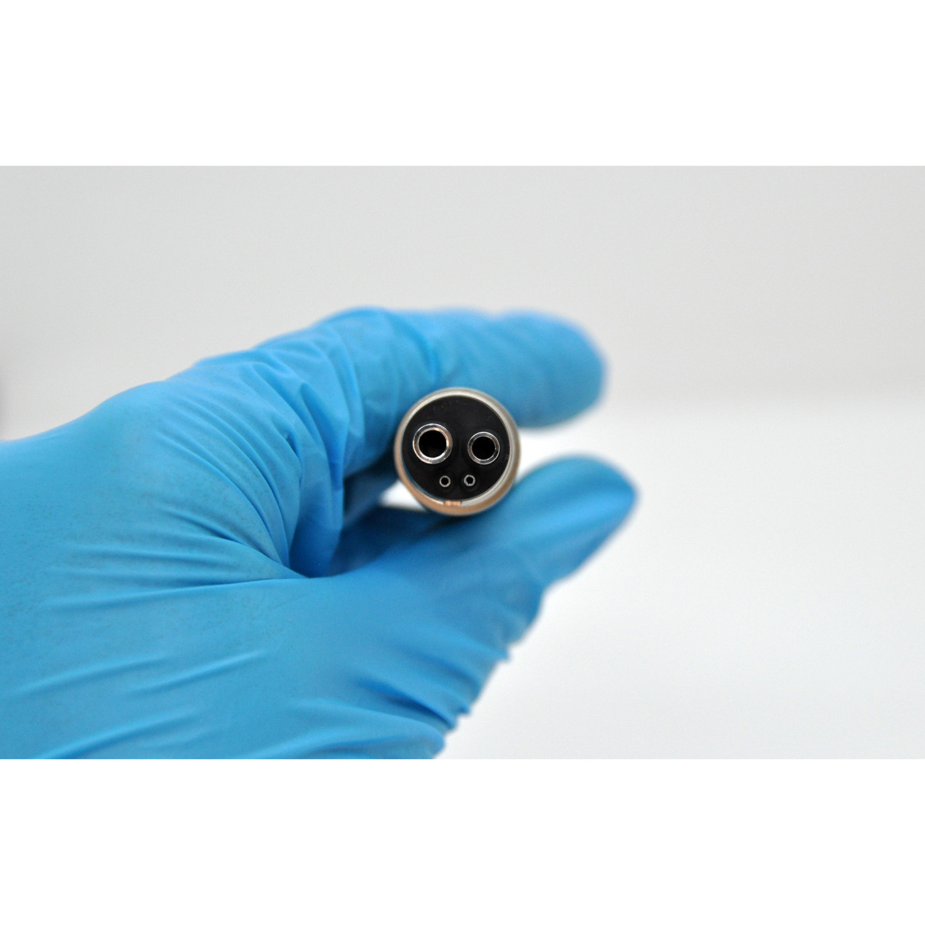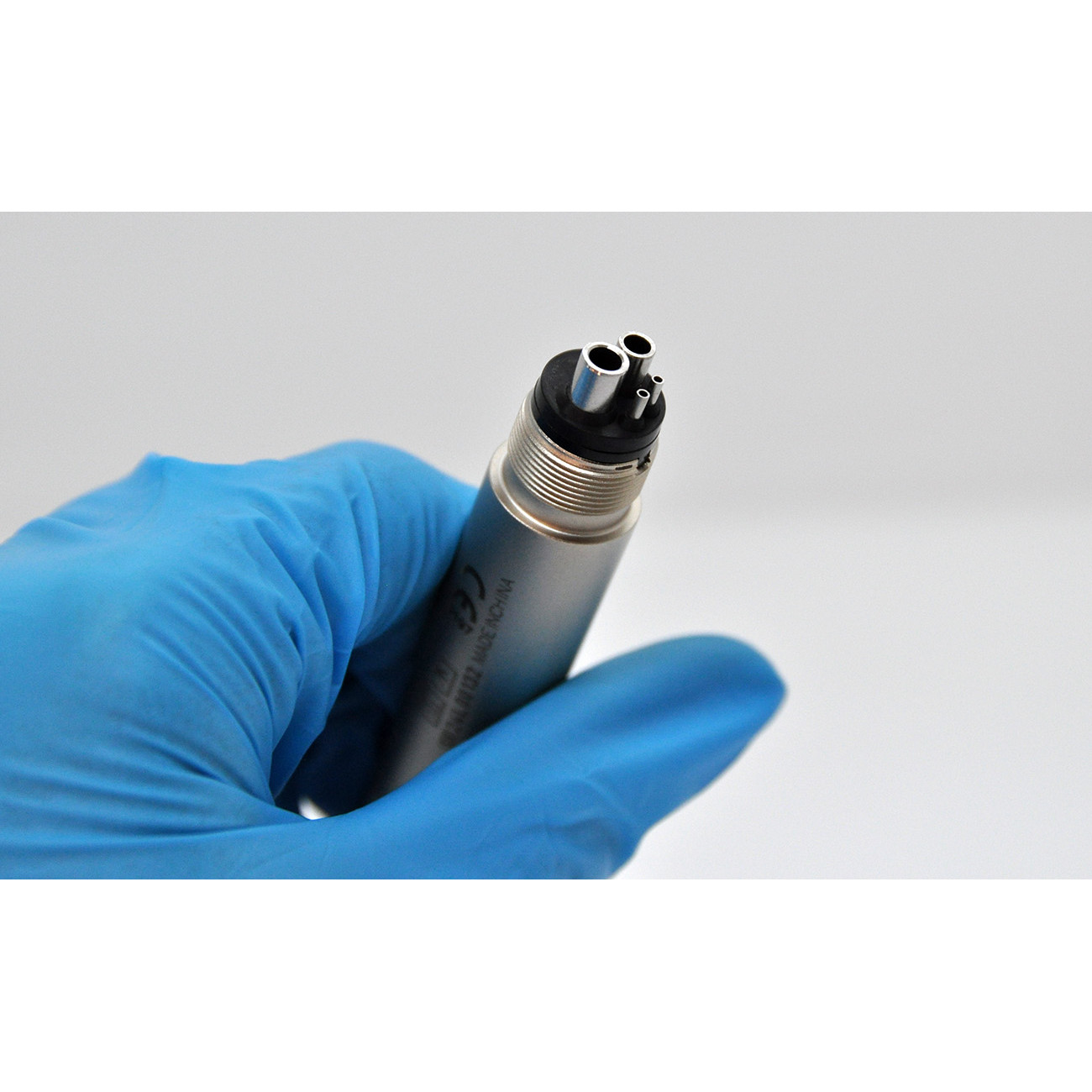 Устойчивое к кислотам титановое напыление и сбалансированные до 0,01 мм немецкие керамические подшипники значительно продлевают срок службы наконечника при регулярном использовании на скоростях до 450 тыс. оборотов. Трехточечная система подачи воды обеспечивает равномерное охлаждение бора и удаление пыли при препарировании зубов.