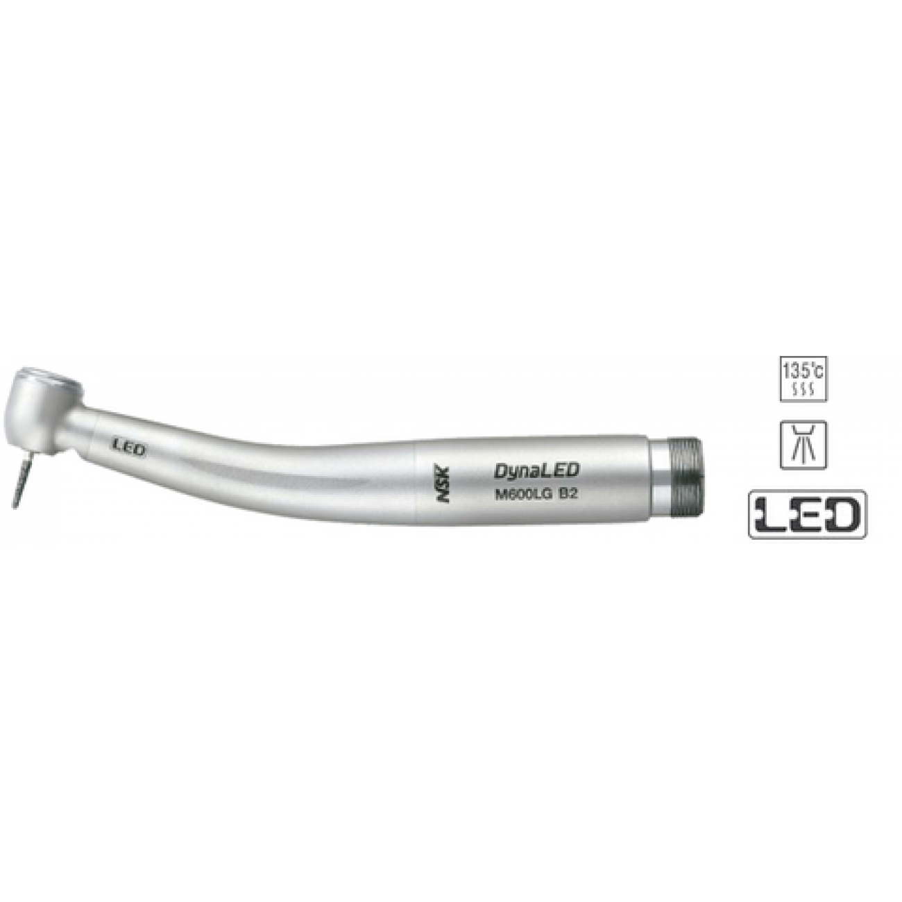DynaLED M500LG B2 (NSK, Япония) - турбинный наконечник с миниатюрной головкой, с интегрированной LED подсветкой (подсветка LED работает независимо от того, есть ли в стоматологической установке модуль подсветки или нет), четырехточечным спреем и керамическими подшипниками. Корпус из нержавеющей стали удобно держать в руке, он изогнут под оптимальным углом, обеспечивая видимость рабочего поля. Система очистки головки, кнопочный зажим бора, комплексный опорный подшипник (ISB). Подсоединение к 2/3-х канальным шлангам Borden.