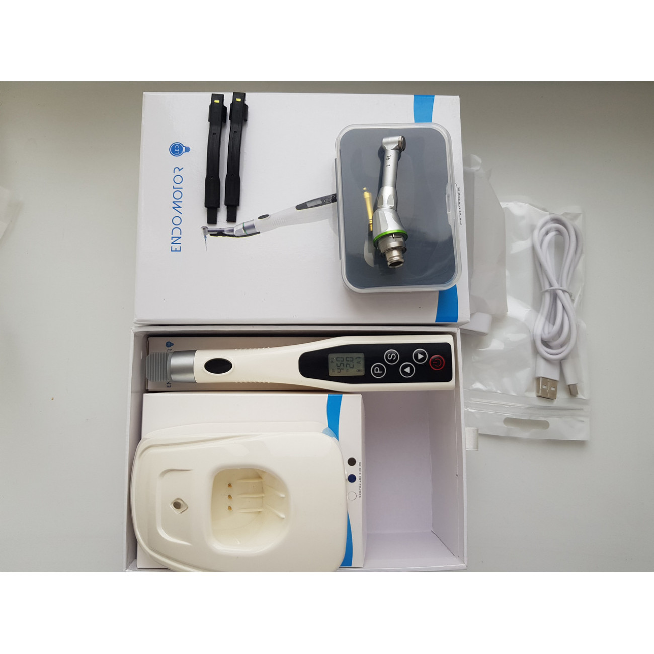 Эндомотор имеет 6 программ в том числе 2 программы для RECIPROC и MTWO и возможность перепрограммирования для создания собственных комбинированных методик работы, меняя скорость и торк. После отключения питания сохраняются последние установки.