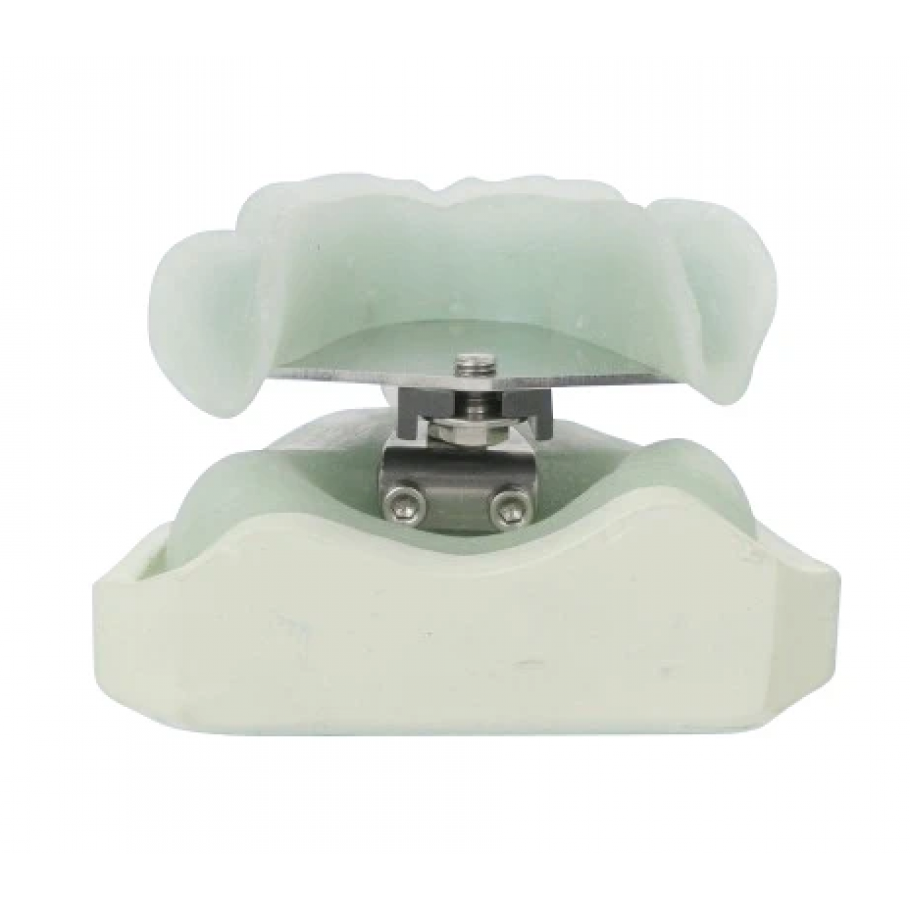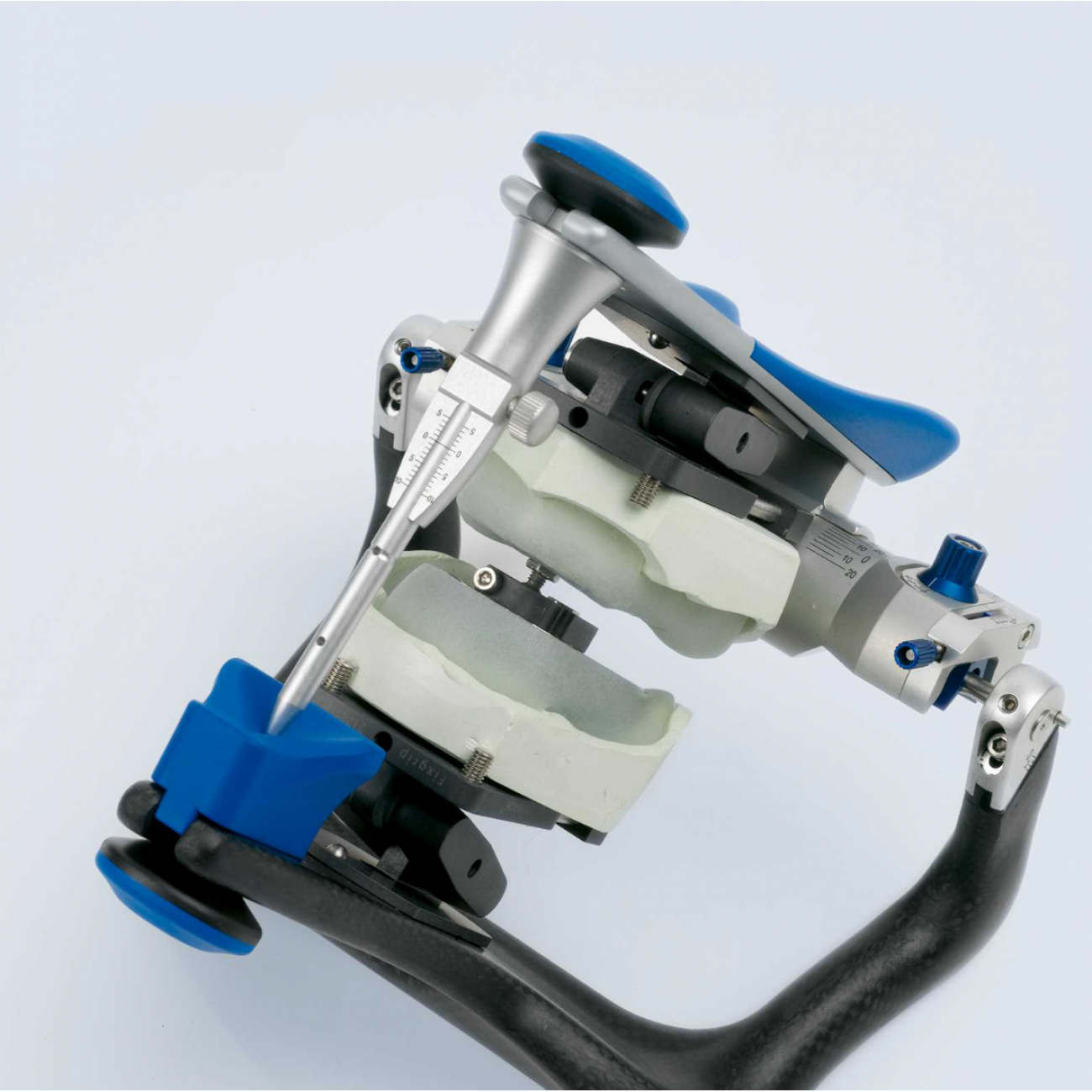 Интраоральный регистрат центральной окклюзии с подвижным по вертикали пишущим шариком корригирует вертикальную дистанцию во время регистрации и фиксирует выявленную позицию центральной окклюзии.