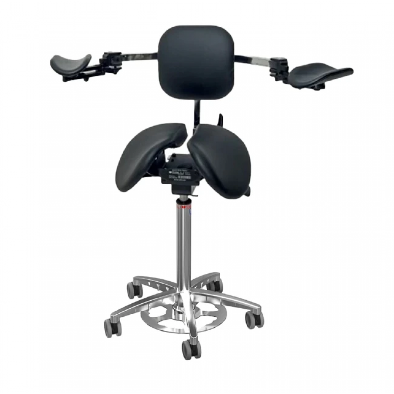 Стул Chin Tilt поставляется в комплекте с опорой рук Salli Ultra, которая поддерживает спину и обе руки при выполнении сложных операций. Удобное расположение локтей в опорах-ложбинах создает оптимальные условия для работы, позволяющее сохранить работоспособность на более продолжительный период. Также подходит для реабилитации после травм плеча.