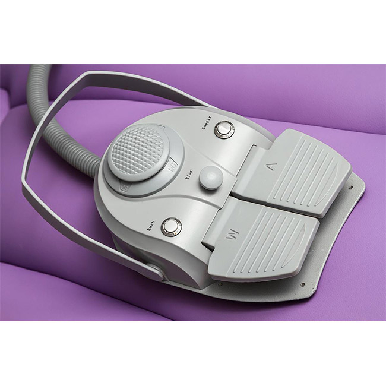 Поворотный гидроблок крепится к креслу, он расположен на дополнительной отдельной штанге, обеспечивая доступа врача к пациенту с обеих сторон.