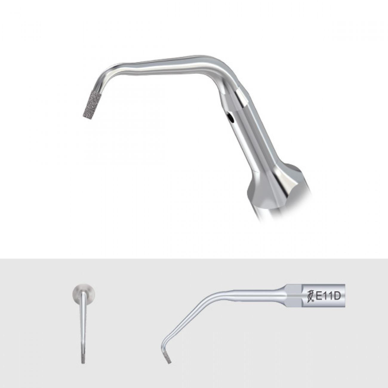 Эндодонтический наконечник для скалеров Woodpecker и EMS типа E11D с алмазным покрытием 40 мкм предназначен для высокоэффективной полировки поверхности корней при ретроградной подготовке зубных каналов. Длина рабочей части с алмазным покрытием составляет 2,2 мм.