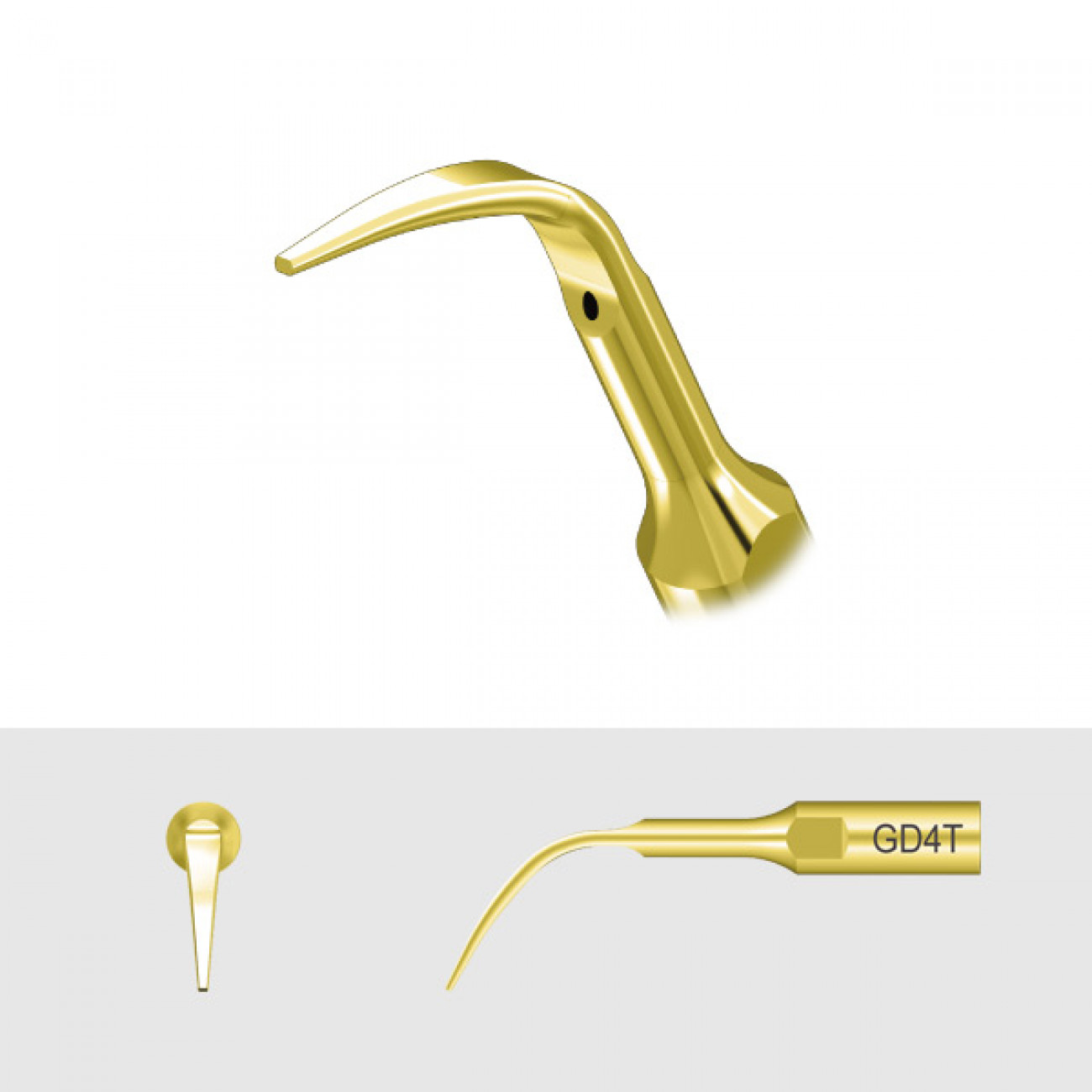 Универсальный наконечник для скалеров DTE и NSK типа GD4T используется для удаления отложений зубного камня и адгезивного налета с наддесневой поверхности зуба и в межзубном пространстве. Дополнительное нитрид-титановое покрытие защищает поверхность наконечника от коррозии и износа.
