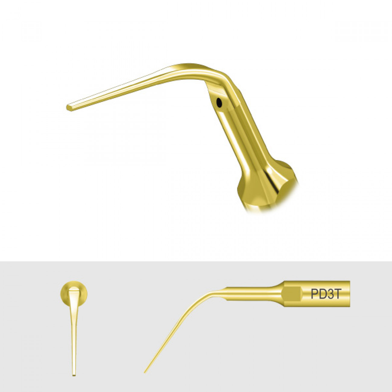 Наконечник для скалеров DTE и NSK типа PD3T рекомендован для проведения процедуры очистки и промывания глубоких десневых карманов. Дополнительное нитрид-титановое покрытие защищает поверхность наконечника от коррозии и износа.
