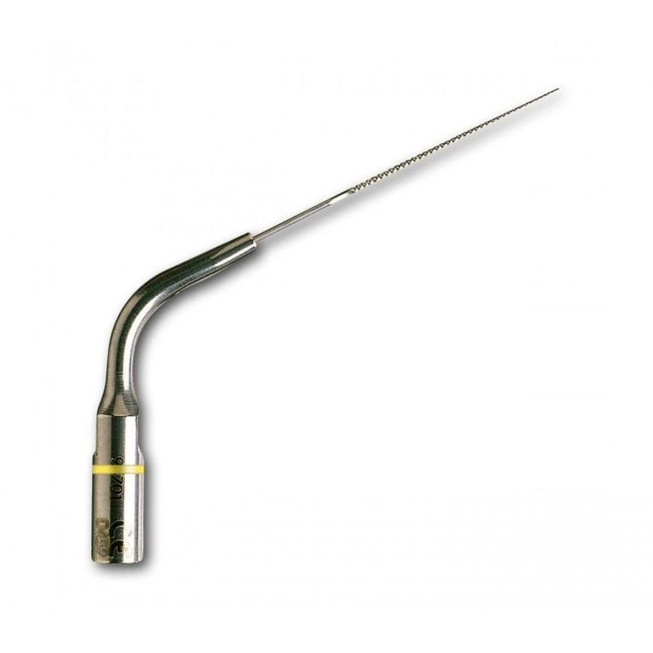 Стандартный K-file, диаметром 1,5мм, длина рабочей части 25мм. В сечении - квадрат, рабочая часть образована 4 спиралевидно закрученными гранями функционального стержня. Стержень зажат в теле угловой насадки, обеспечивающий удобное введение функционального стержня при стандартном эндодонтическом доступе в пульповую камеру зуба. Ультразвуковые колебания насадки снимают необходимость вращательных движений в канале. Рекомендуется аккуратное равномерное продвижение инструмента на рабочую глубину корневого канала без длительных остановок насадки в какой-либо точке во включенном состоянии, во избежание формирования уступа кончиком насадки на стенке корневого канала в области его изгиба.