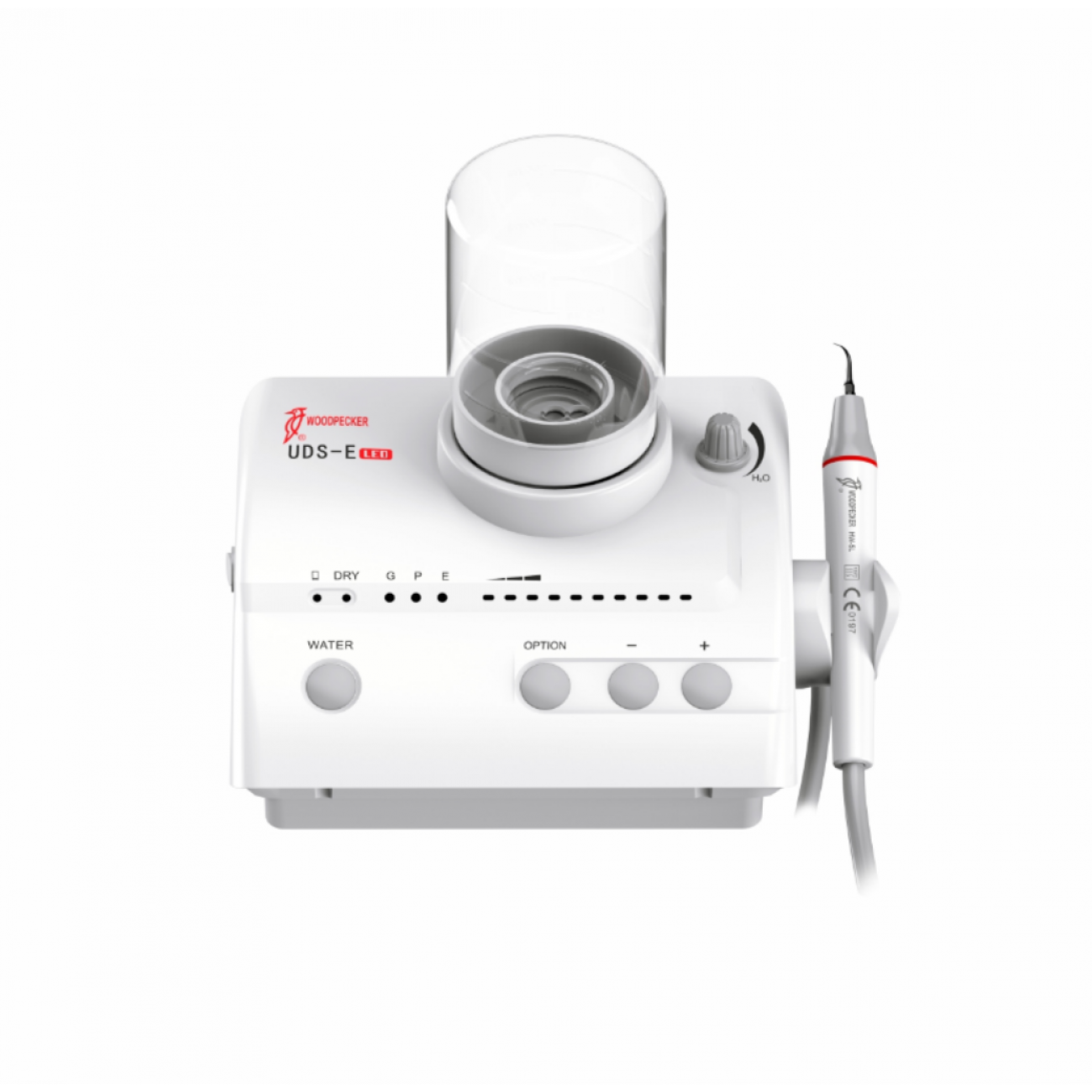 Автономный ультразвуковой стоматологический скалер с подсветкой UDS-E LED от компании Guilin Woodpecker - близкий аналог системы EMS MiniMaster, полностью совместимый с насадками EMS. Скалер оснащен бесшланговой емкостью для воды, диафрагмовой помпой и трубкой из антисептического материала для распыления клинических растворов под давлением, включая перекись водорода, хлоргексидин, гипохлорит натрия и другие ирригационные жидкости. Благодаря данной особенности аппарат UDS-E LED способен эффективно обработать поверхность корня зуба при проведении пародонтологического лечения.
