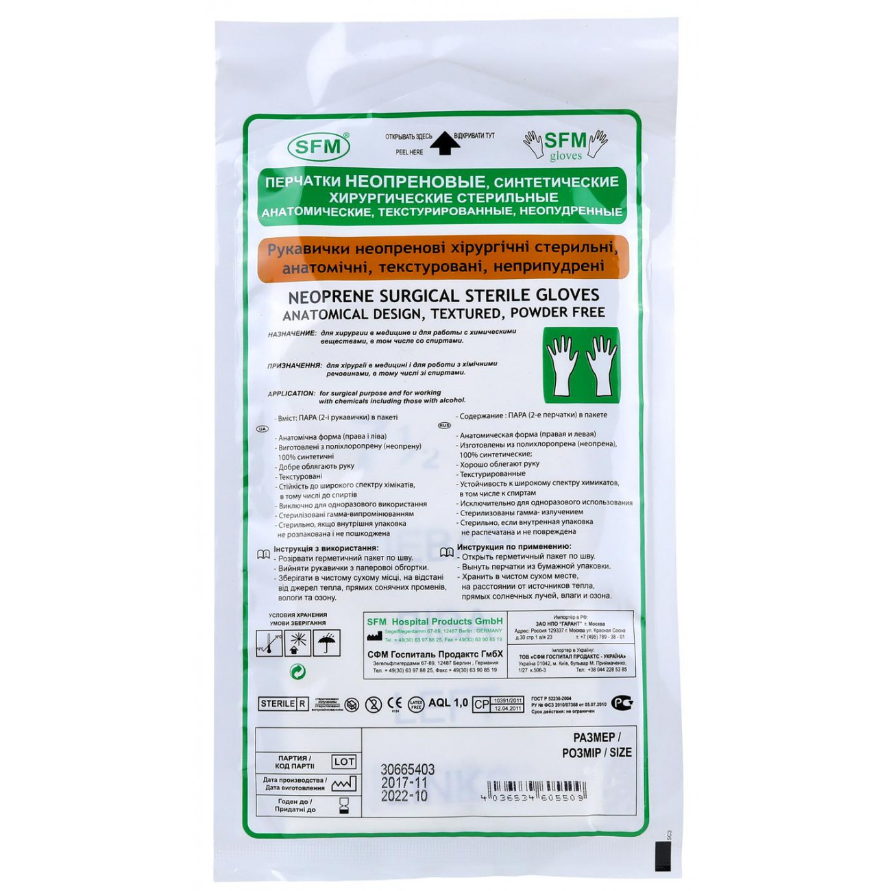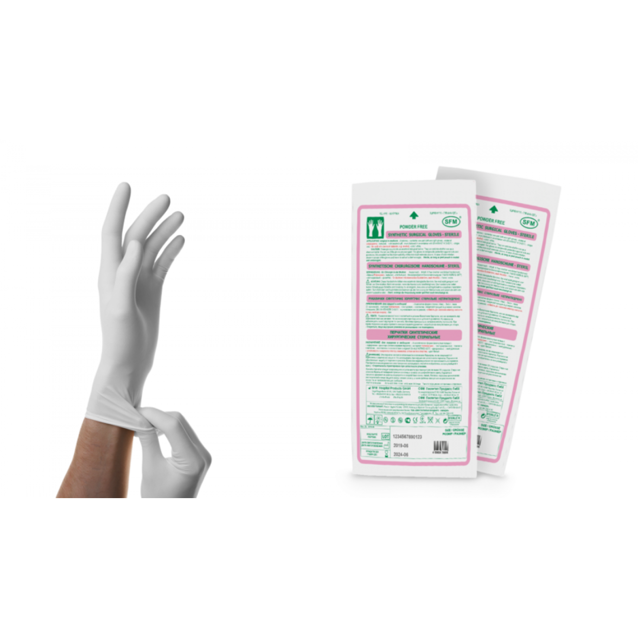 Перчатки синтетические стерильные неопреновые созданы для дополнительной защиты пациентов и пользователей во время хирургических операций, лечения и обследования. Перчатки синтетические стерильные неопреновые имеют изогнутые пальцы для анатомической конструкции, чтобы уменьшить усталость рук. Перчатки из неопрена имеют текстурированную поверхность по всей площади, чтобы избежать скольжения. Перчатки оптимизированы для влажного надевания.