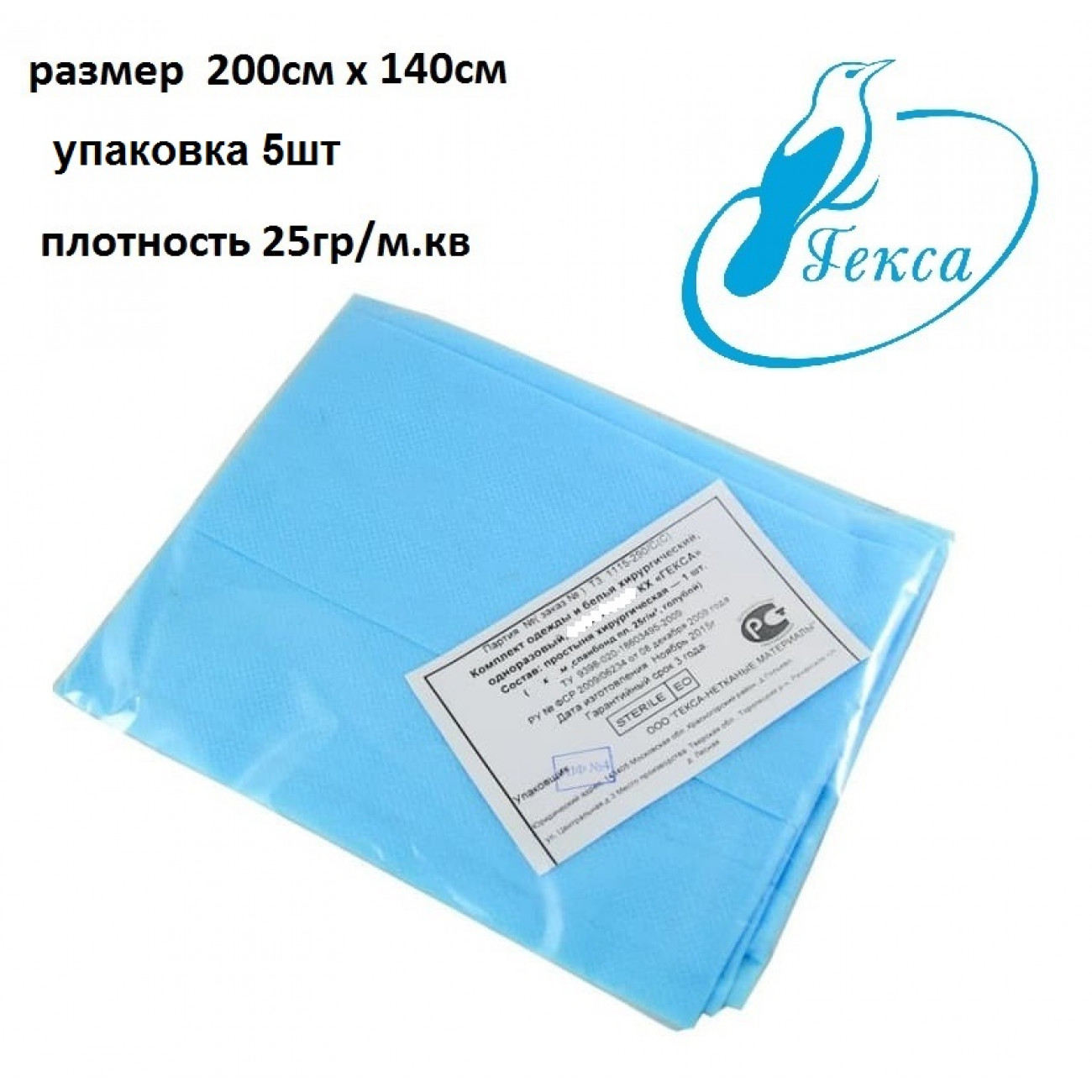 | Характеристики Простыня НЕстерильная 200см Х 140см Голубая | |
