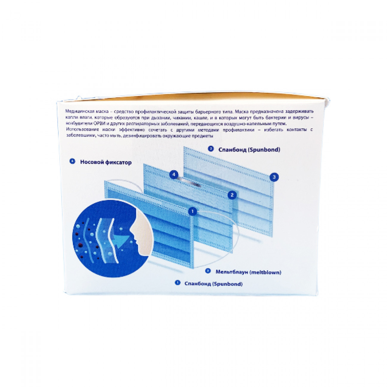 Благодаря трёхслойной структуре с использованием Мельтблауна средней плотности в качестве фильтра маски Новимед эффективно фильтруют воздух, сохраняя при этом высокую проницаемость — дышать в ней легко и комфортно.