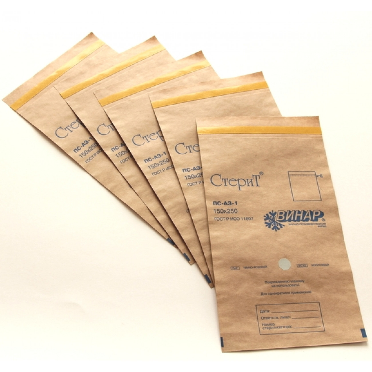 Пакеты бумажные самоклеющиеся с индикаторами для паровой и воздушной стерилизации.