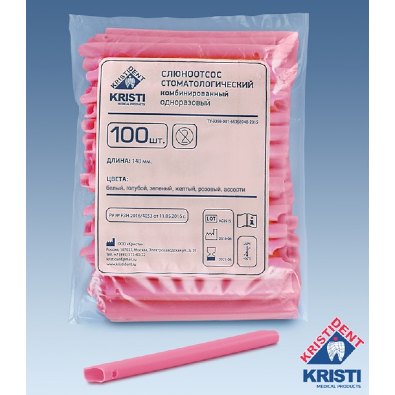 Пылесосы одноразовые нестерильные РОЗОВЫЕ (148мм, ø10мм) (уп 100шт) КристиДент
