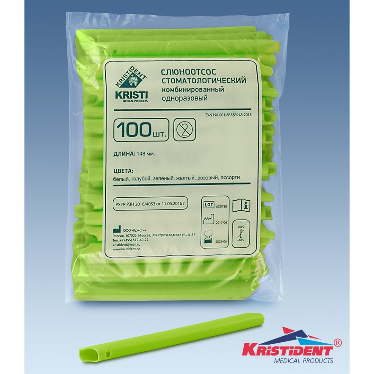 Пылесосы одноразовые нестерильные ЗЕЛЕНЫЕ (148мм, ø10мм) (уп 100шт) КристиДент