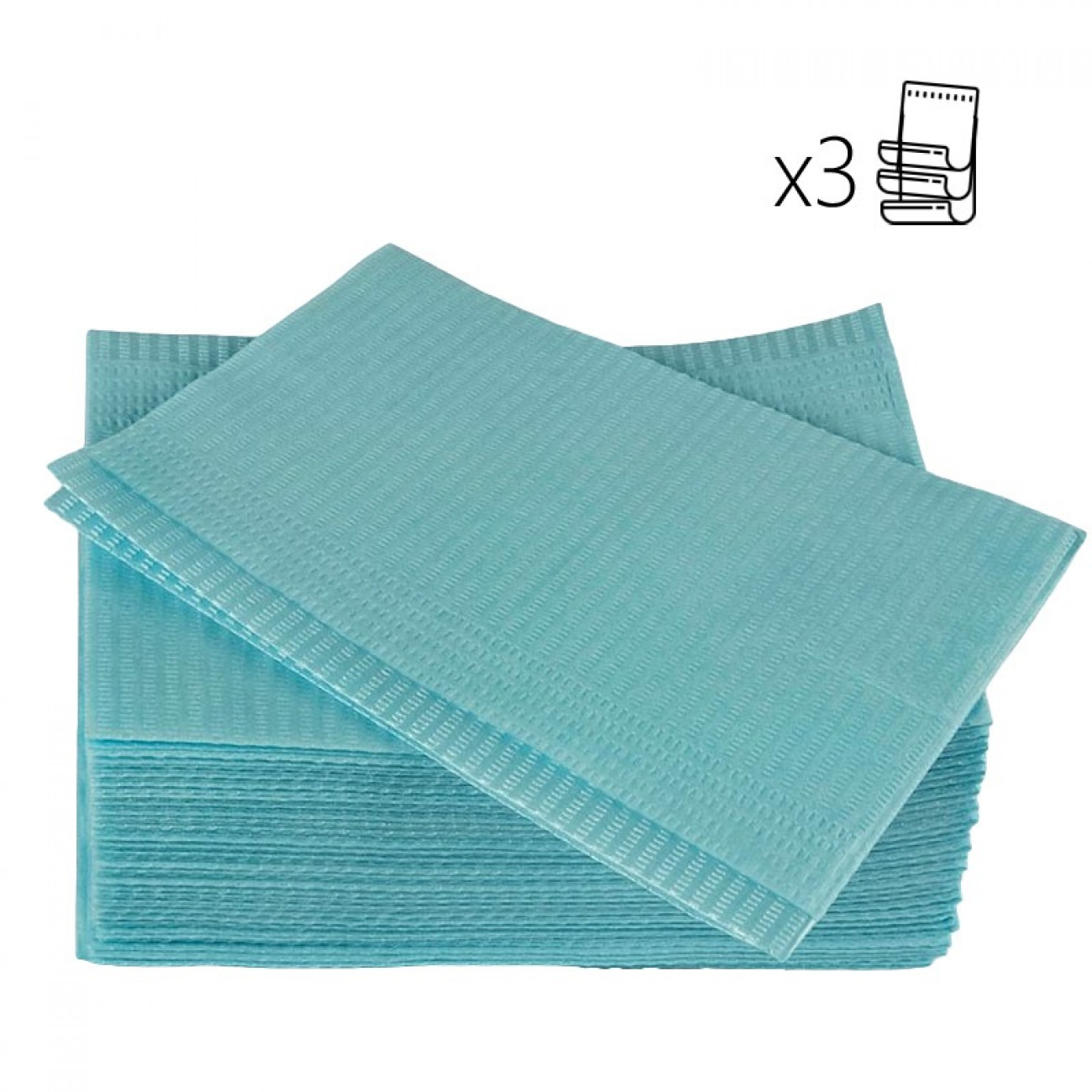 Стоматологический нагрудник Премиум (2+1). Одноразовый, максимально защищает одежду пациента от загрязнения во время стоматологического лечения и сопутствующих процедур благодаря рельефному горизонтальному рисунку.