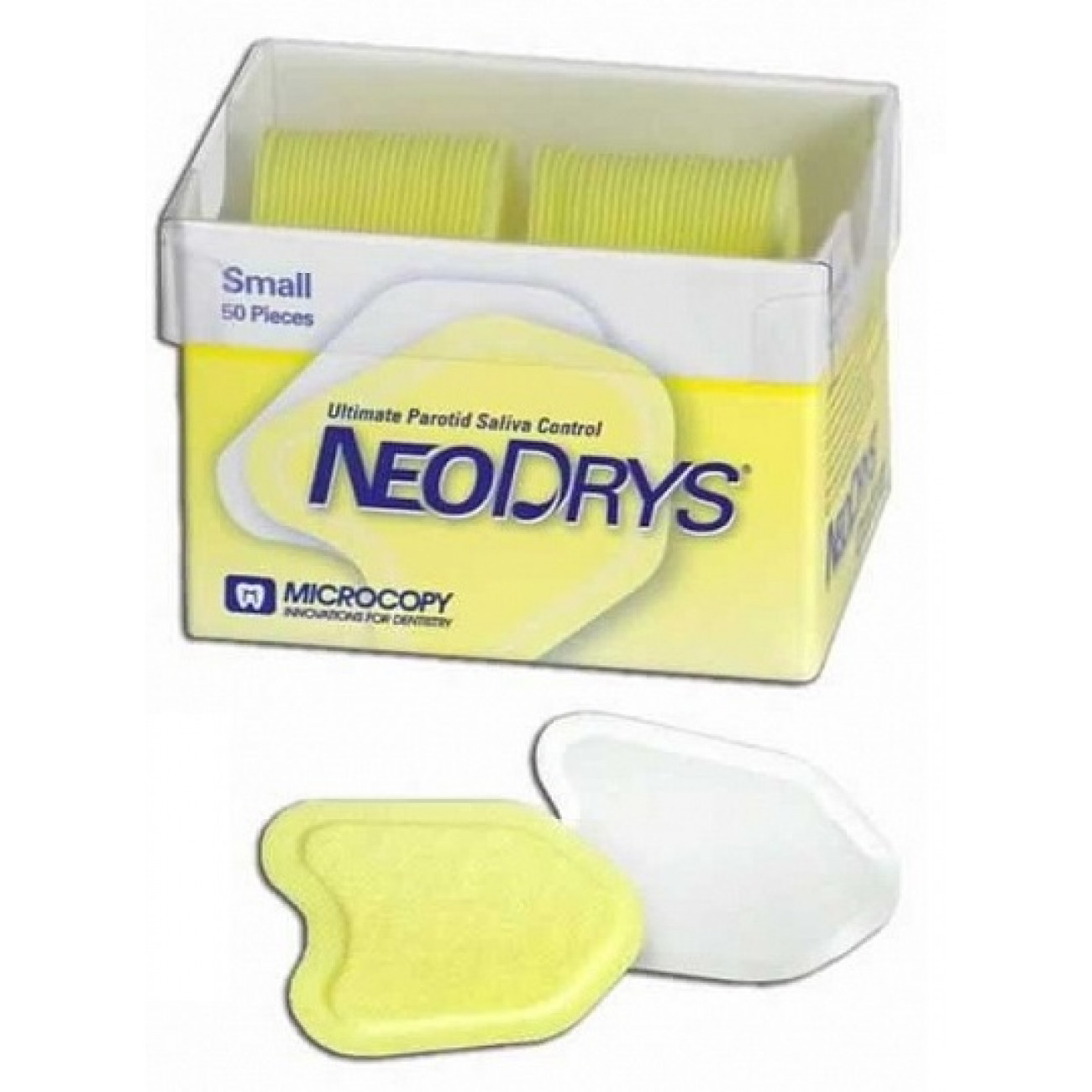 Продукт DryTips состоит из трех скрепленных вместе слоев прокладки, эффективно абсорбирующих слюну, предназначен для наложения на область отверстий околоушных желез и слизистые оболочки щек во время стоматологических процедур, для которых полость рта постоянно должна оставаться сухой.