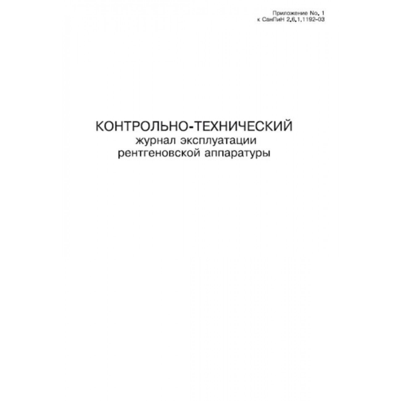 Форма контрольно-технического журнала эксплуатации рентгеновской аппаратуры идентична форме контрольно-технического журнала и определена в Приложении №1 к СанПиН 2.6.1.1192-03.