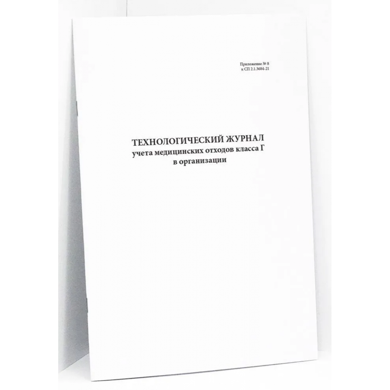 Технологический журнал учета медицинских отходов класса Г в организации (Приложение № 8 к СП 2.1.3684-21).