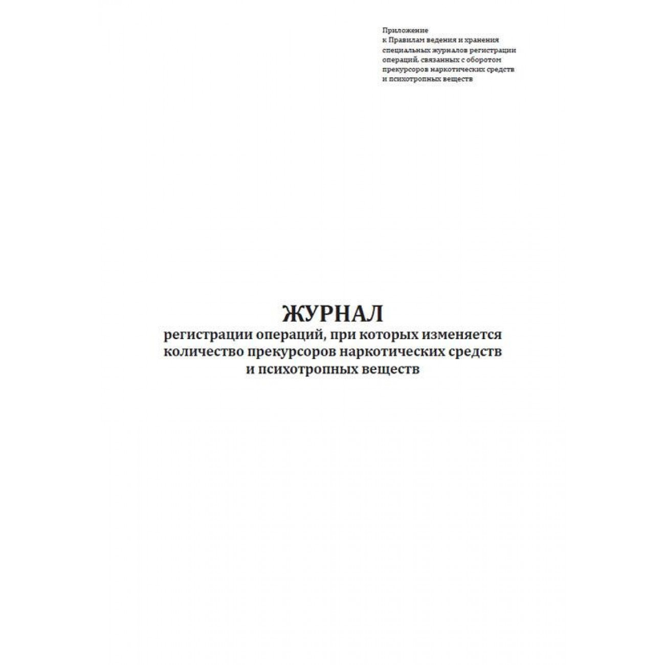 При осуществлении видов деятельности, связанных с оборотом прекурсоров, любые операции, при которых изменяется количество прекурсоров, подлежат занесению в специальный журнал регистрации операций. Журнал регистрации ведется на бумажном носителе или в электронной форме.