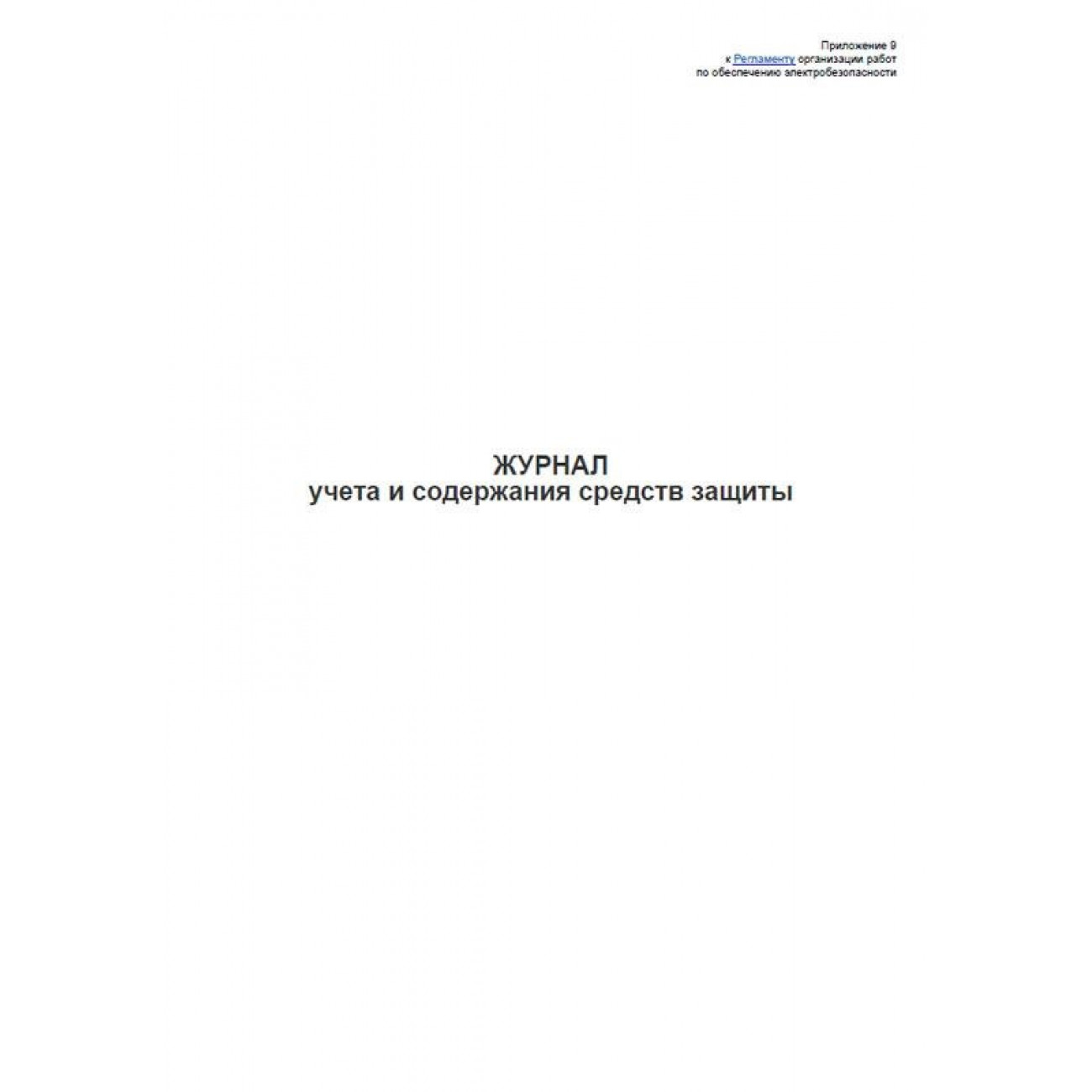 Форма журнала соответствует Приложению 9 к Приказу Департамента здравоохранения г. Москвы от 03.09.2015 N 738 "Об утверждении Регламента организации работ по обеспечению электробезопасности и форм документов, оформляемых по результатам проверки состояния и условий охраны труда".