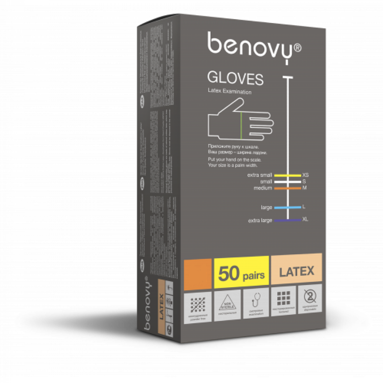 Перчатки медицинские диагностические (смотровые) одноразовые нестерильные "BENOVY" из натурального латекса текстурированные неопудренные с однократной хлоринацией натурального цвета