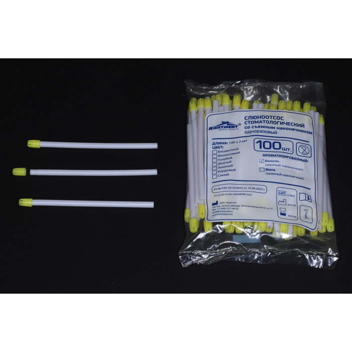 Слюноотсосы со съемным колпачком, Белые с запахом Ваниль (100шт) 150мм, Кристидент Код товара: 27922
