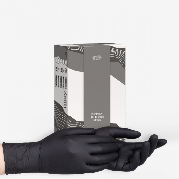 Перчатки нитрил, 100шт, Черные Armel M (7-8) Код товара: 30891