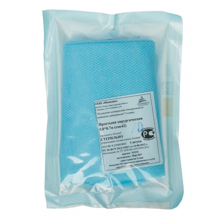 Простыня стерил 70см Х 80см, Голубая, плотн 25гр/кв.м. (1шт) Новисет Код товара: 30941