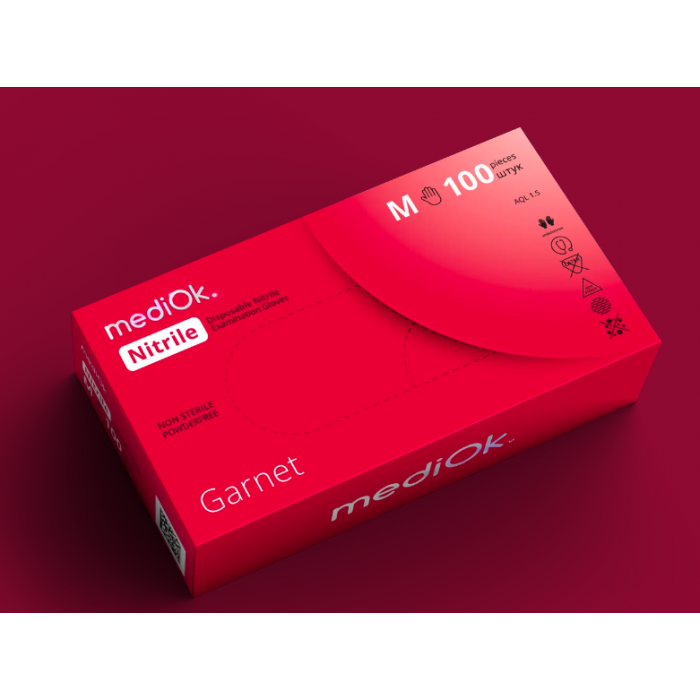 Перчатки нитрил, 100шт, Красные (Garnet) MediOk S(6-7) (МедиОК) Код товара: 32631