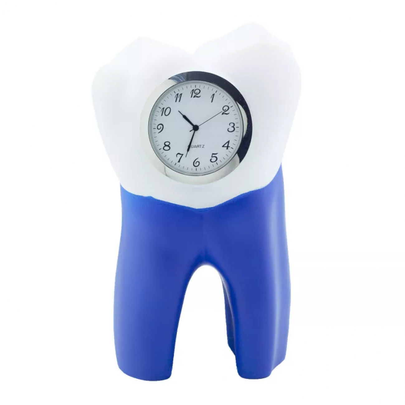 Настольные часы, выполненные в виде зуба в бело-синем цвете, станут оригинальным украшением интерьера.