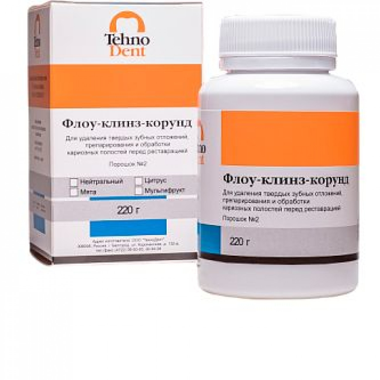Флоу-Клинз-корунд (Порошок №2 ,220 г) для удаления твердых зубных отложений.