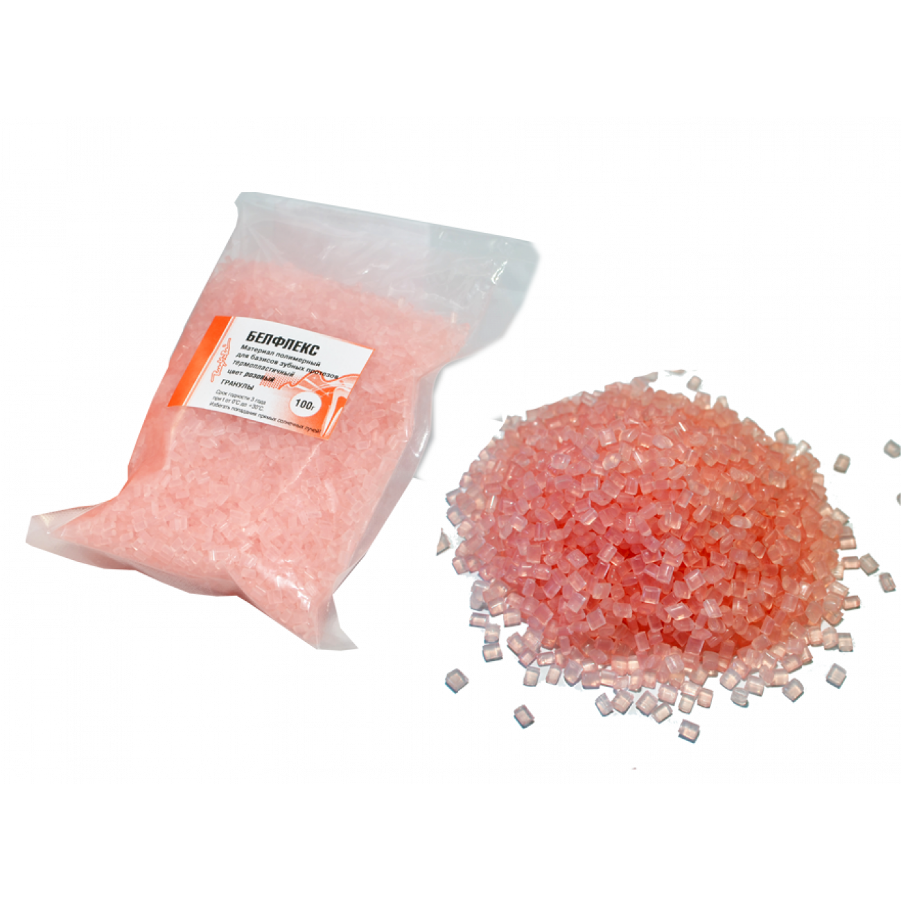 Базисный материал «Белфлекс» изготовлен на основе полиамида и выпускается в виде гранул или в виде заготовок цилиндрической формы, которые могут быть неокрашенным или окрашенным в розовый цвет, с «прожилками» или без.