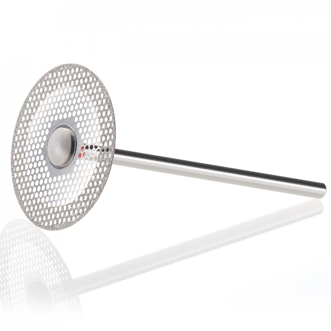 Перфорированный сепарационный алмазный диск NTI Superflex 806.104.400.514.220 с окантовкой с обеих сторон предназначен для разделения и обработки межзубных сепараций ортопедических протезов из высокопрочной керамики, композитов и диоксида циркония.