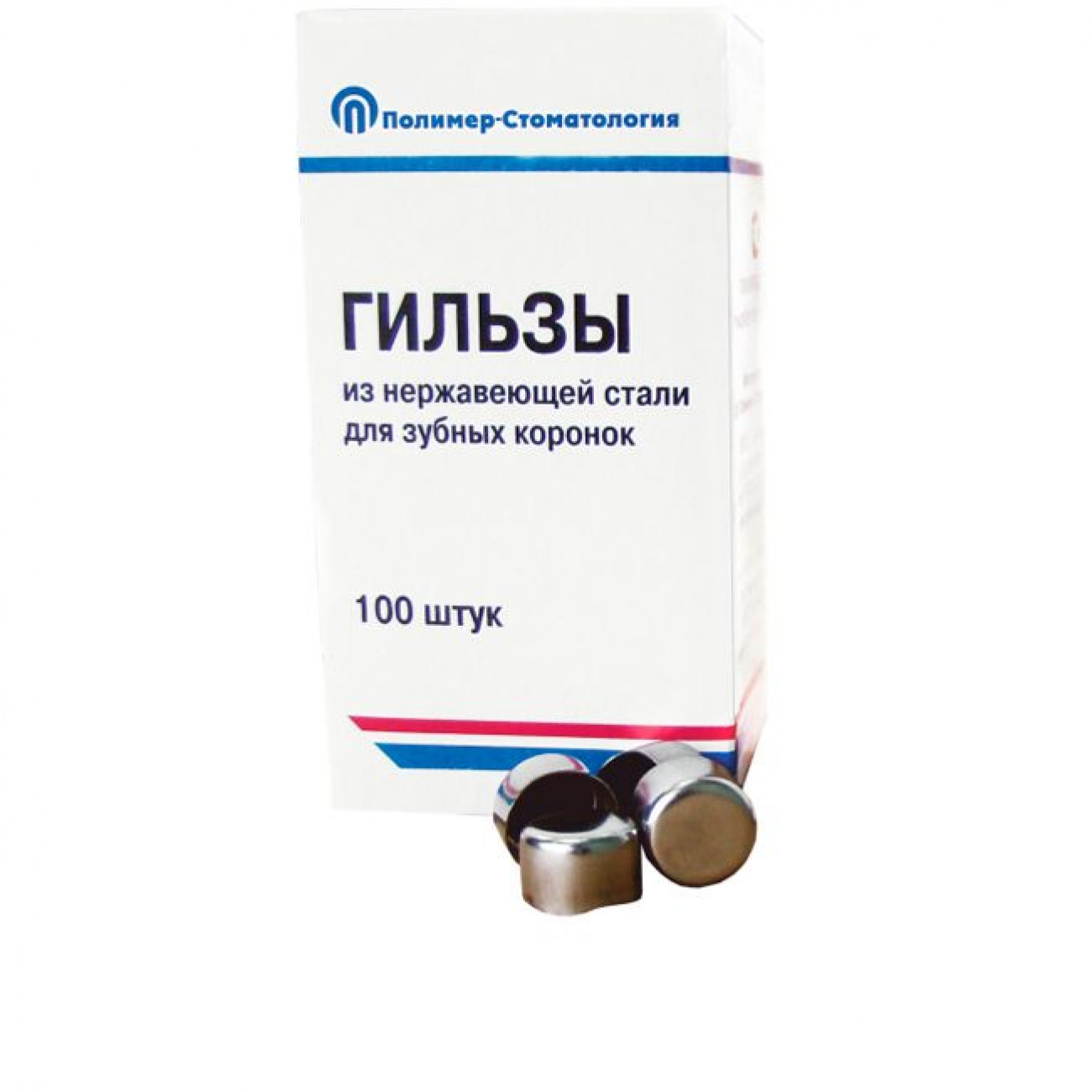 Гильзы из стальной нержавеющей ленты, изготовленные методом штамповки и применяемые в зубопротезировании для изготовления зубных коронок.