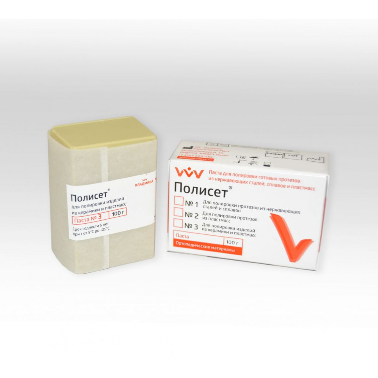 Пасты «Полисет №1, №2, №3» содержат абразив, поверхностноактивное вещество. В качестве связывающе-охлаждающих веществ содержат воск, стеарин, парафин. Полисет №4» содержит водорастворимый пастообразователь.