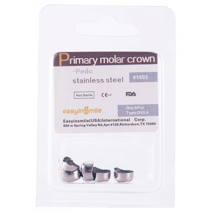 Коронки из нержавеющей стали для восстановления временных зубов, подверженных обширному кариозному процессу, затрагивающему несколько поверхностей зуба. Поставляется в отдельной упаковке.