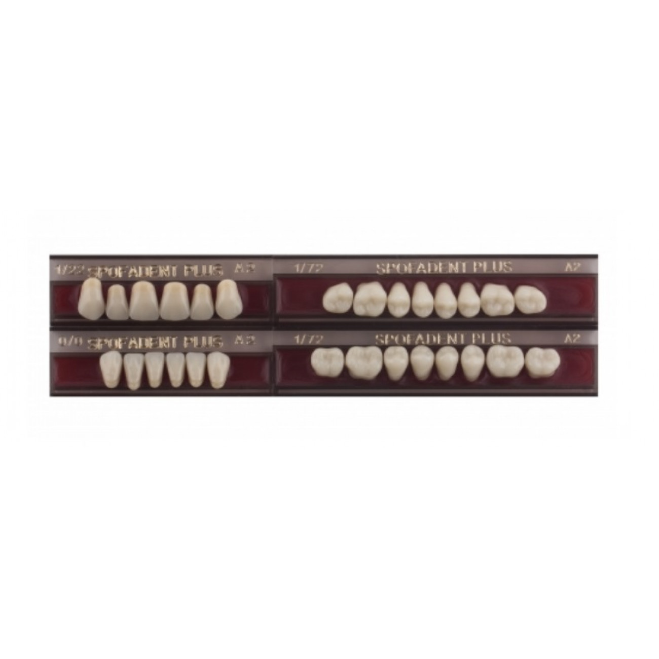 Пластмассовые зубы для изготовления съемных зубных протезов. Зубы, изготовленные из метилметакрилатных кополимеров, имеющие высокую устойчивость к истиранию, высокую химическую устойчивость, долговечную цветовую стабильность и велико-лепные эстетические качества.