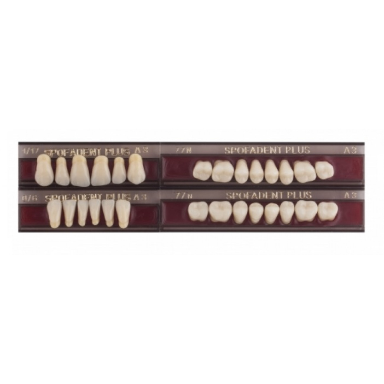 Пластмассовые зубы для изготовления съемных зубных протезов. Зубы, изготовленные из метилметакрилатных кополимеров, имеющие высокую устойчивость к истиранию, высокую химическую устойчивость, долговечную цветовую стабильность и велико-лепные эстетические качества.