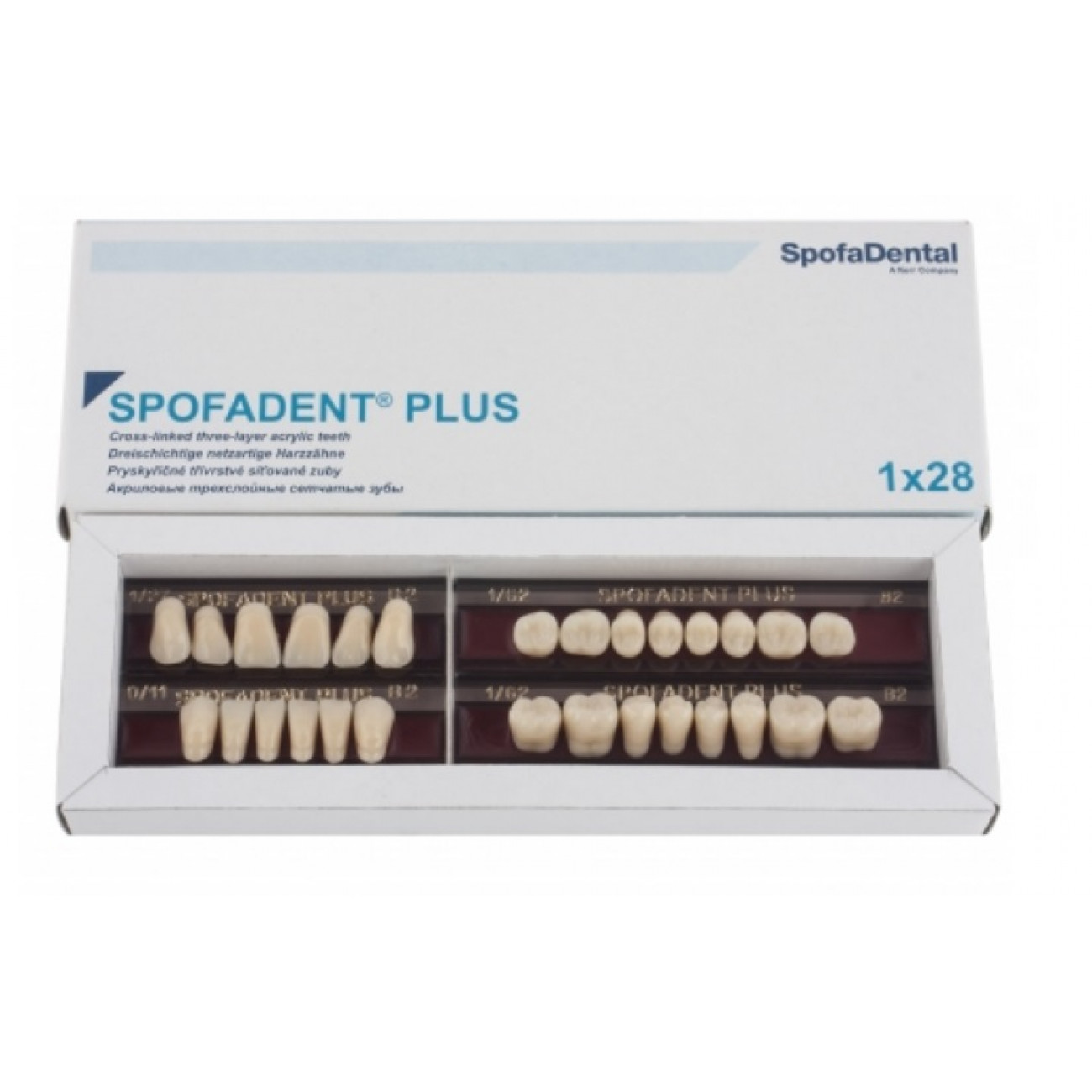 Спофадент Плюс (B2) 1/27-0/11-1/62 (28шт) - Трехслойные акриловые зубы SPOFA
