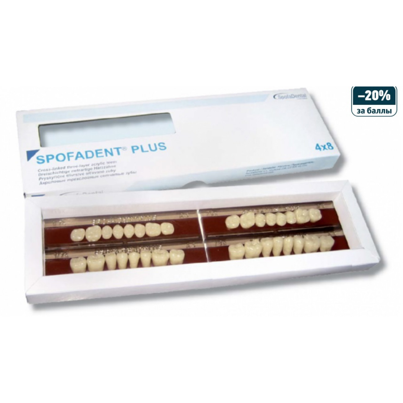 Акриловые зубы - цвет С1, для изготовления зубных протезов съёмного типа. Производятся из сополимеров метилметакрилата. К достоинствам пластмассовых зубов Спофадент Плюс можно отнести высокую цветостабильность, химическую стойкость, устойчивость к истиранию. Комплект – 28 зубов.
