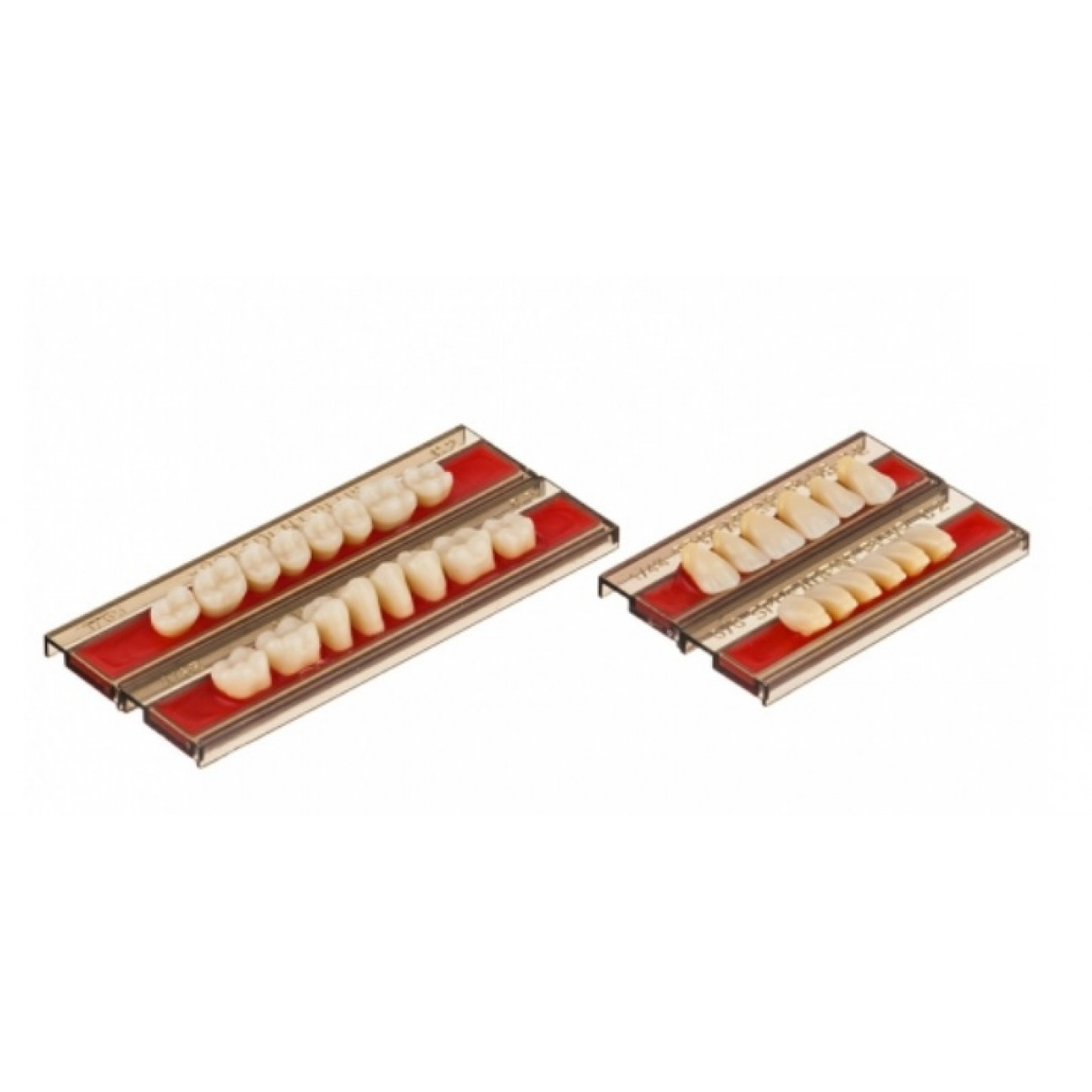 Пластмассовые зубы для изготовления съемных зубных протезов. Зубы, изготовленные из метилметакрилатных кополимеров, имеющие высокую устойчивость к истиранию, высокую химическую устойчивость, долговечную цветовую стабильность и велико-лепные эстетические качества.